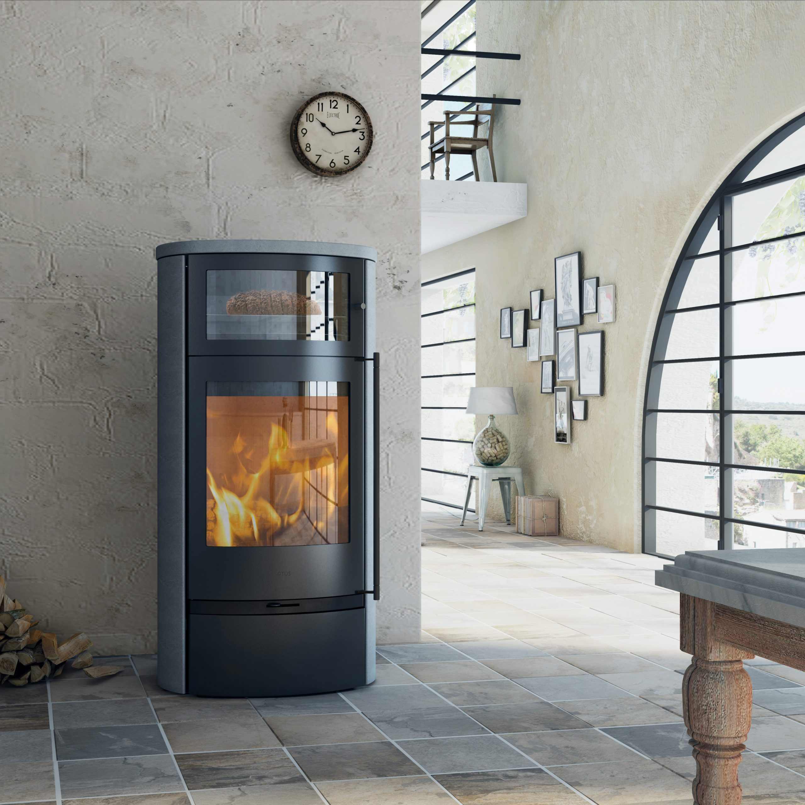 Det enorme brændkammer kan tage brændestykker helt op til 50 cm. Bagrammen på lågen er af støbejern for at give optimal holdbarhed og styrke. Brændkammerat af formstøbt skamol er bygget til at rumme de store mængder brænde. Alt dette sørger for en optimal udnyttelse og varmeeffekt. Brugervenligheden er tænkt ind i enhver detalje, og styrehåndtagene er smukt integreret over den smalle brændefagslåge, der kan rumme optændingsmaterialer og tilbehør. Den store solide låge åbnes nemt med den elegante komfort lukning.