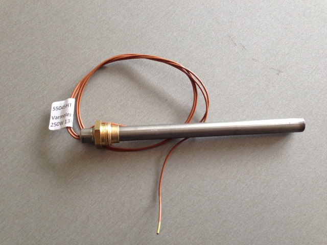 Varmelegeme 250 W – Længde 136 mm med møtrik.
