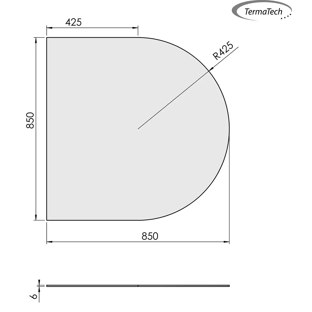 Gulvplade lige med cirkelbue 85×85 cm. Leveres i Glas 6 mm